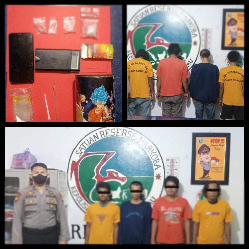 Dipaparkan Donny, dari para tersangka polisi menyita sejumlah barang bukti diantanya 7 Pekat sedang kantong bening berklip berisi sabu, satu buah timbangan digital, satu buah hp, dua pipet alat hisap sabu dan barang bukti lainnya yang berkaitan dengan tindak pidana para tersangka.